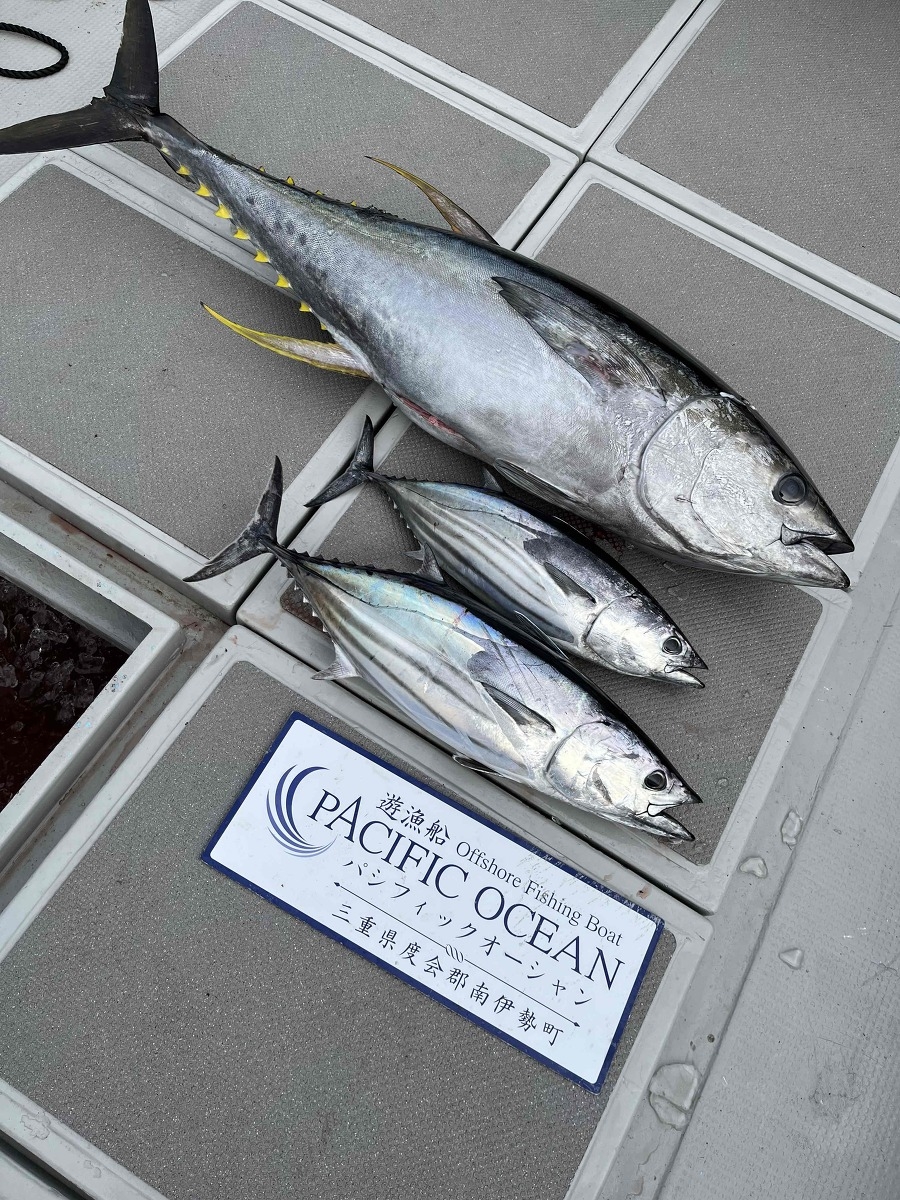 状況としては、三重県沖では時折、キハダマグロ、ビンチョウマグロ、カツオのナブラが起こっています。