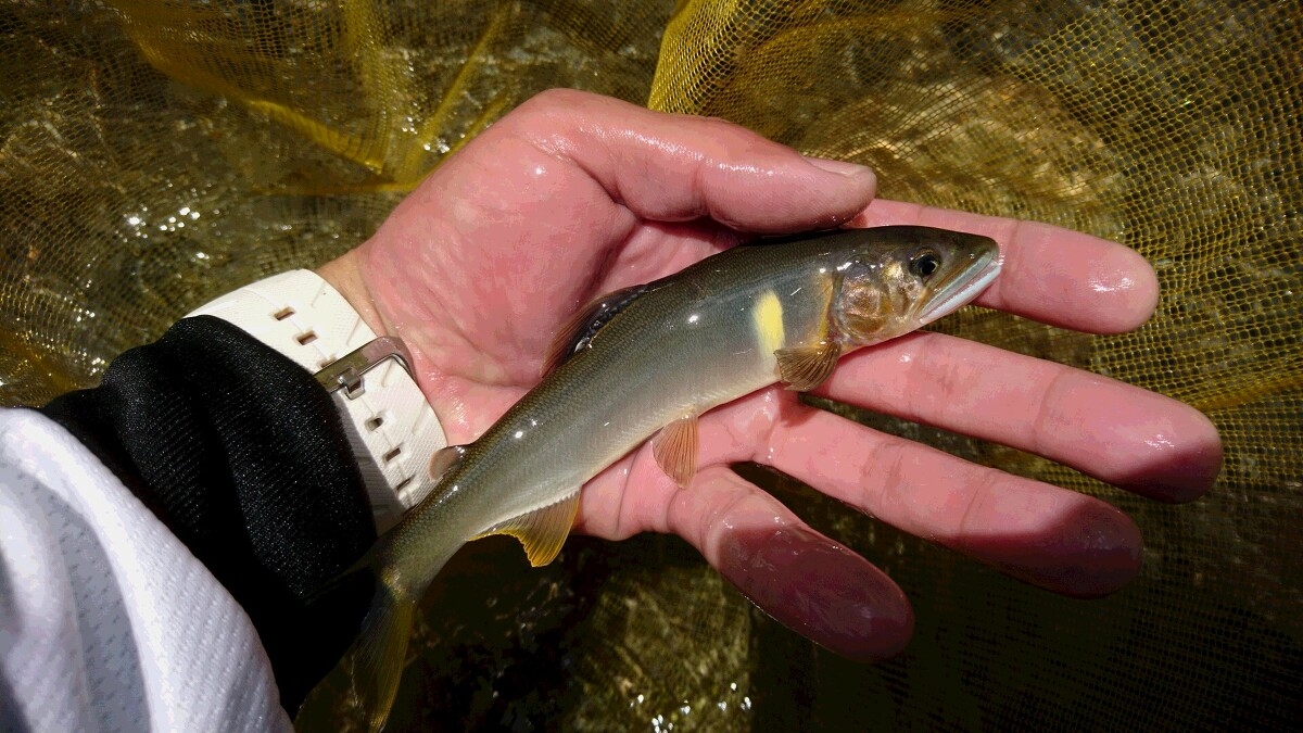 少し濁り気味ではありましたが、早々に黄色い天然アユが掛かってくれました。