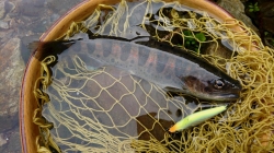 何と言ってもミノーで釣れるのは面白いです!スプーンでも大型のイワナが釣れていました。ボトム狙いでは、60センチクラスのトラウトも釣れていました。