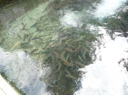 昔からの鱒の養殖が今でも行われ、釣り場以外の池には、たくさんの鱒が