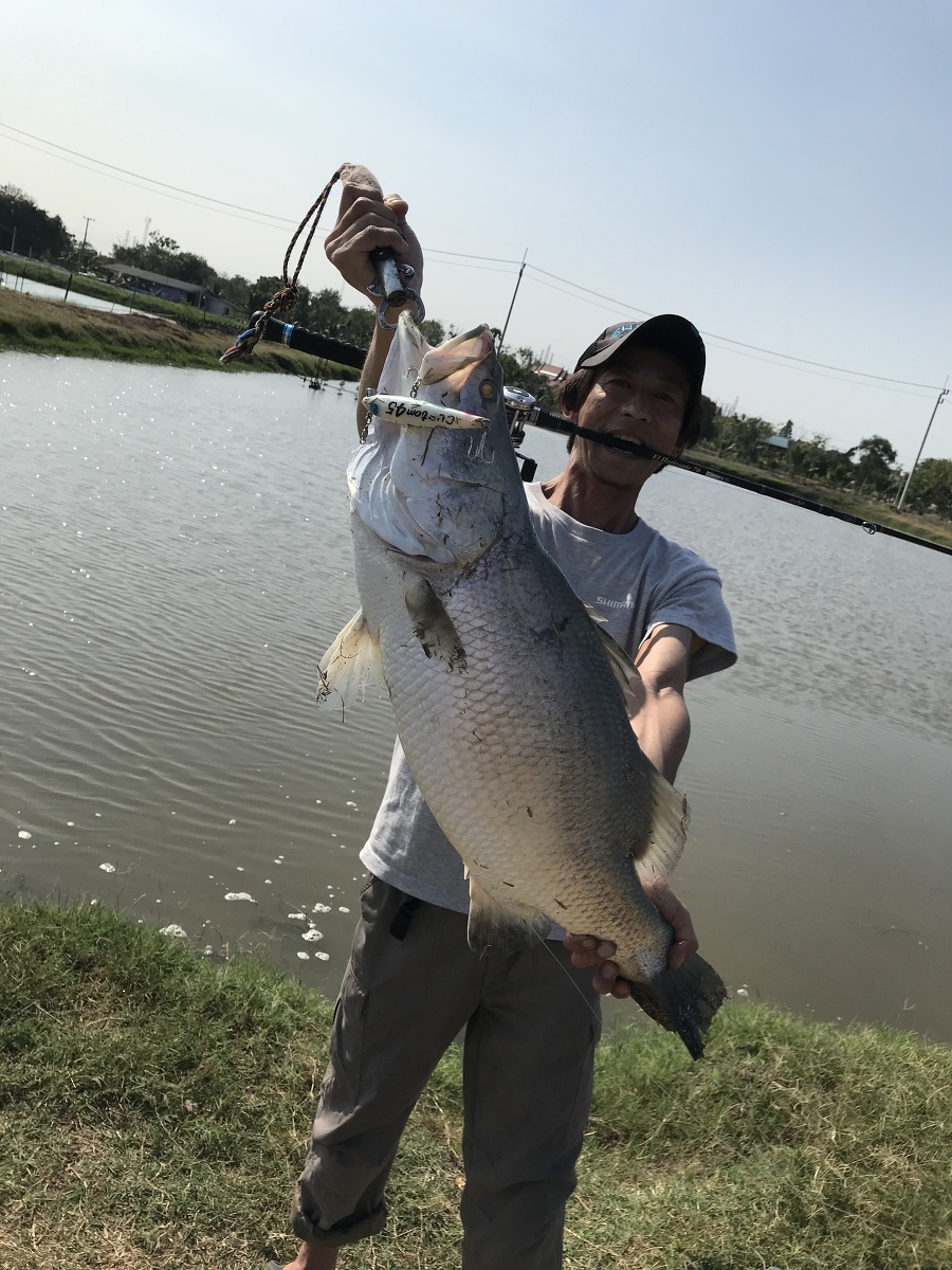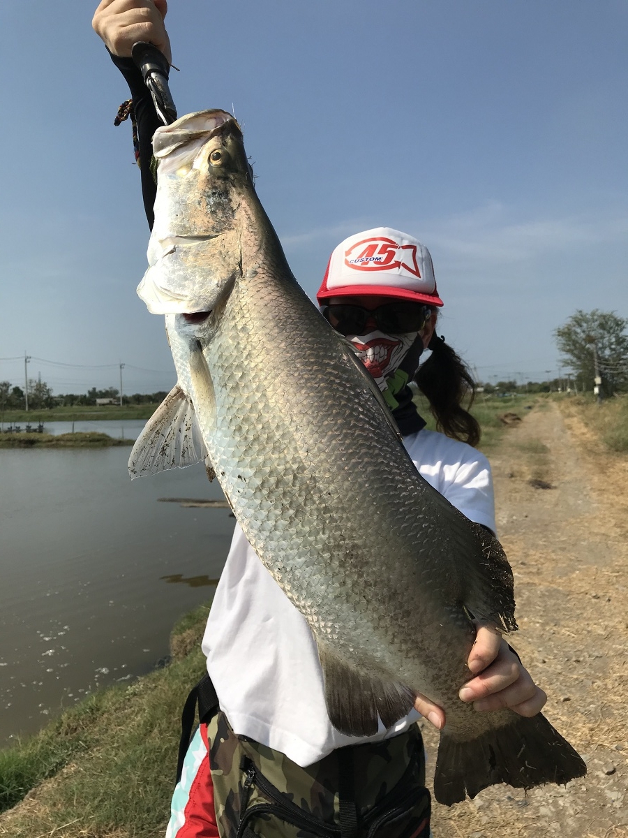 次にパクー、ナイフフィッシュ狙いのポンドに移動したが、反応悪く、釣れませんでした。大型のナイフフィッシュは同行者が確認されました。そんな中、シンペンでカスタム45女将は、小型ですがバラマンディを釣り上げていました。