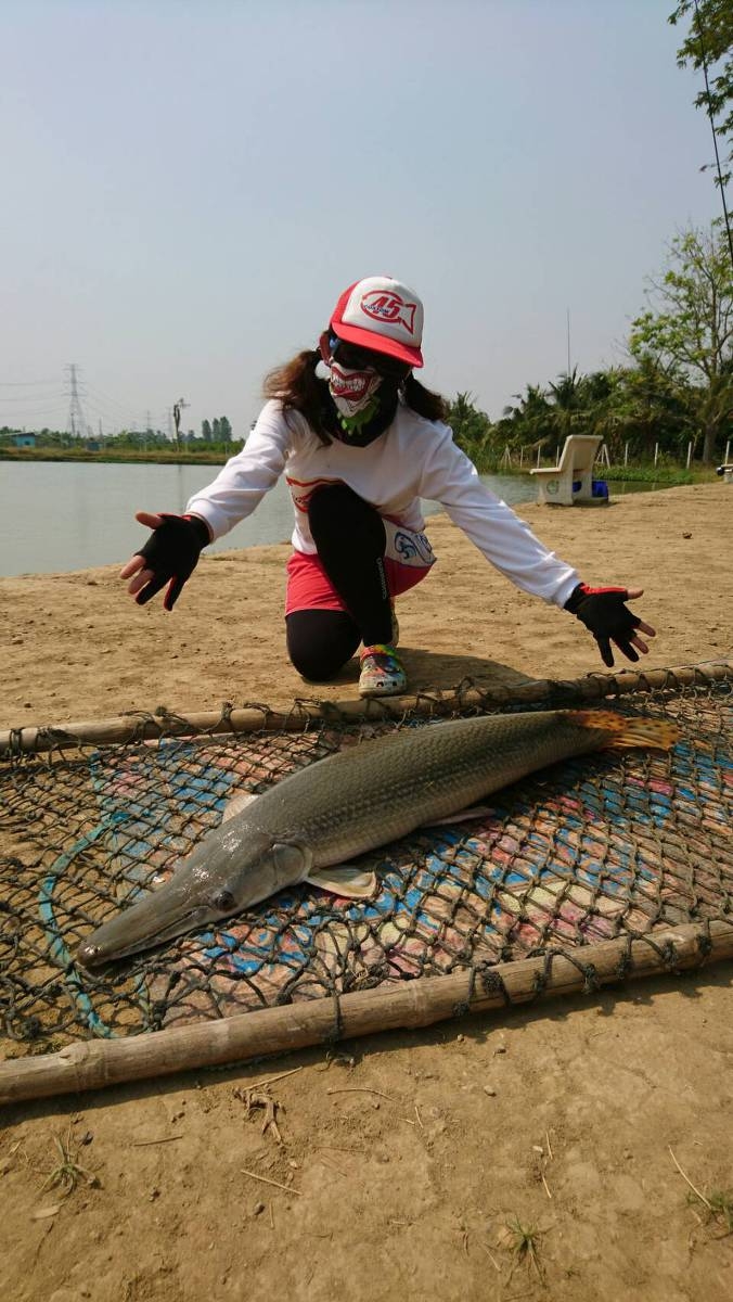 ピラルク、レッドテールキャットフィッシュ、アリゲーターガー、チャオプラヤキャットフィッシュが釣れます。