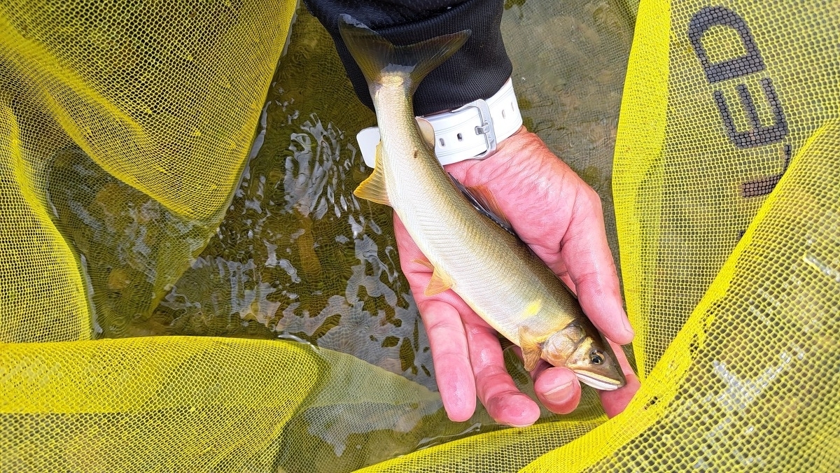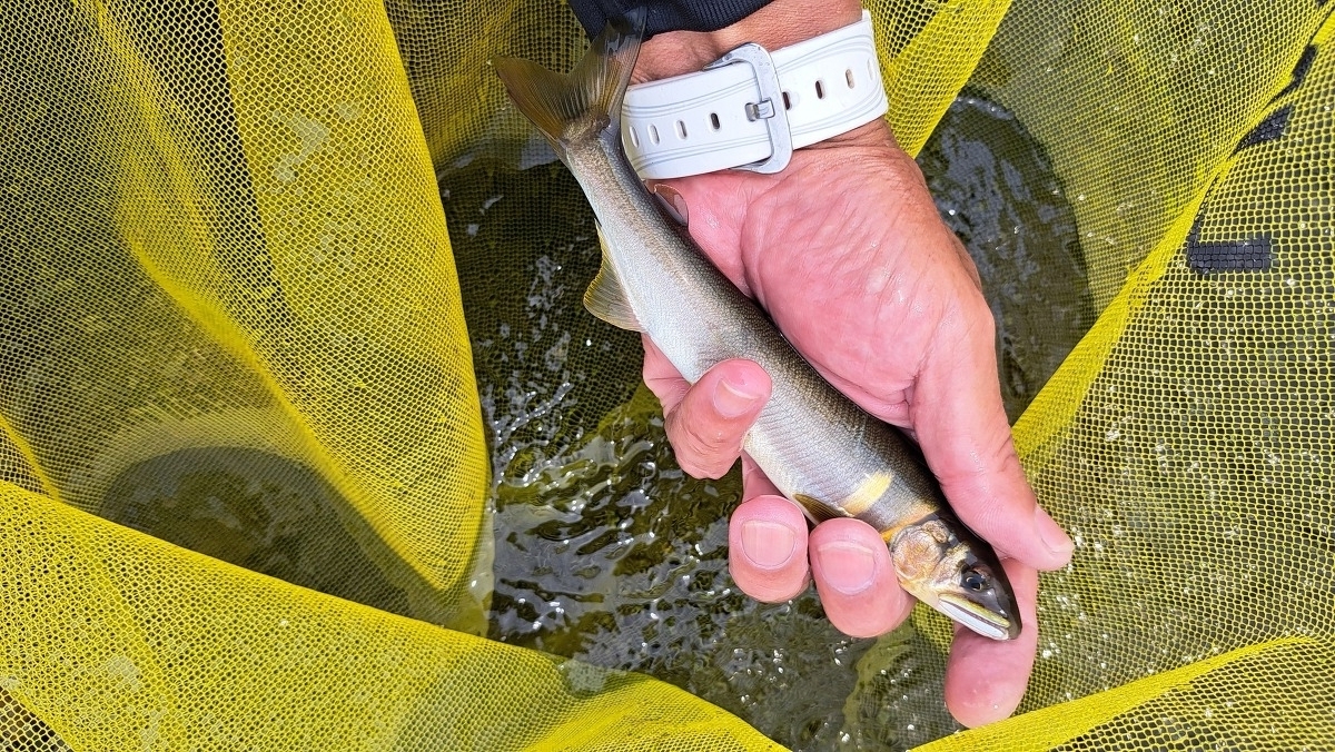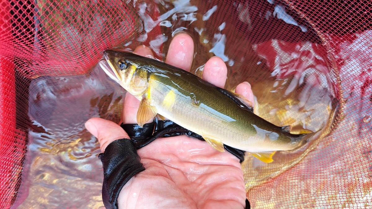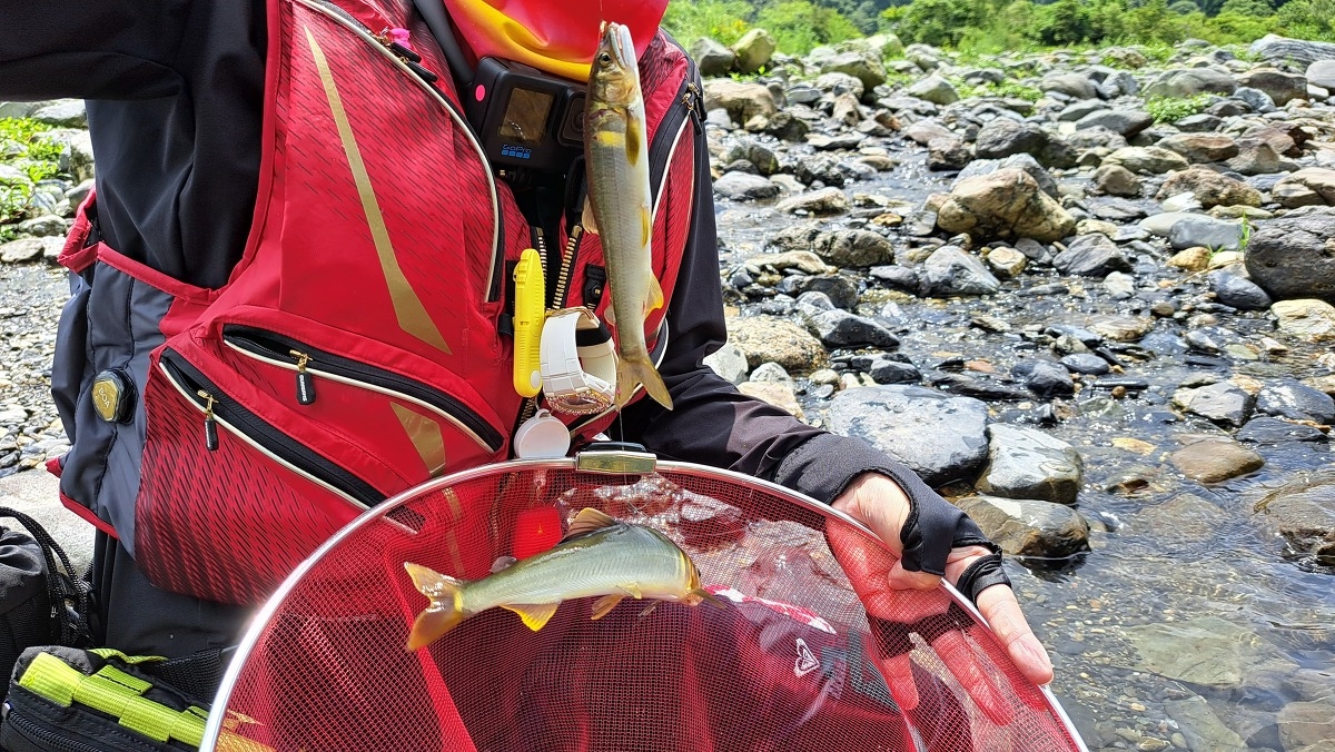 小さな鮎はたくさん遡上しています。少し水深のあるポイントに入れるといいサイズが掛かりました。