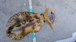 なんとか1キロ程のが釣れ、女将も続いてアオリイカを釣り上げました。