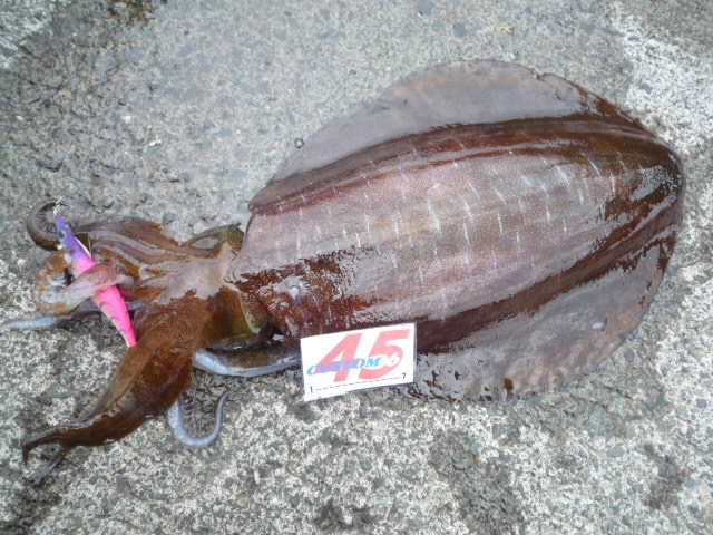 イカが水面に浮き、姿が見えた時、かなり大きく感じ、無事ランディング。