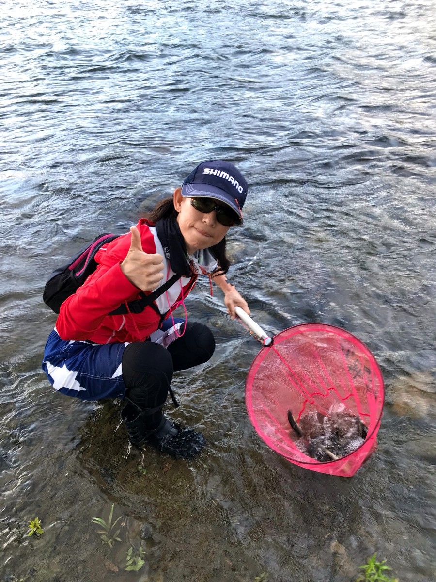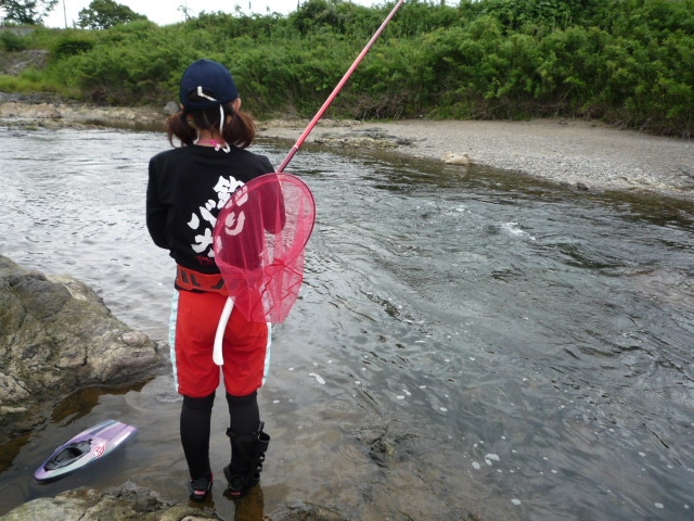 京都上桂川にて、お昼から「釣り具王カスタム45」の女将が鮎友釣り。