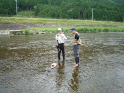 マンツーマン先生方の丁寧な、ご指導により鮎友釣りの第1歩から全員釣られました。