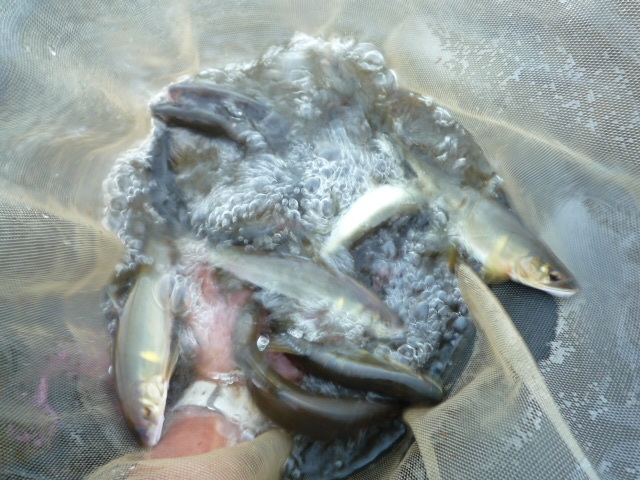 鮎、踏むほどいます。 小鮎ならエギングタックルでも鮎釣り可能⁉️ 限界はありますが・・・