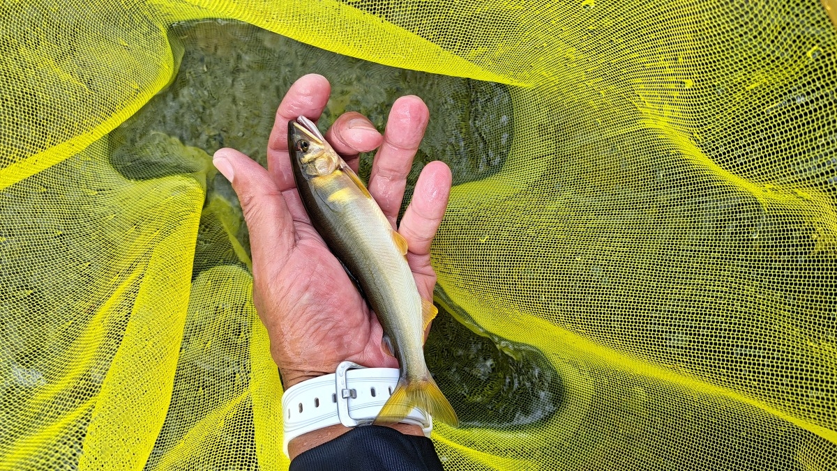 渇水が続いたことで極小の鮎がいなく、小さいですがオトリに使えるサイズばかりが数釣れています。