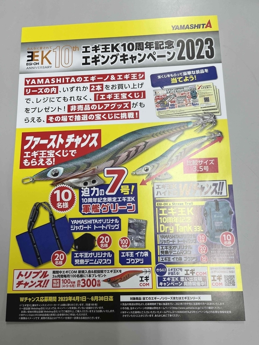 ヤマシタ/恒例のエギングキャンペーン。2本お買い上げで宝くじ1枚プレゼント。