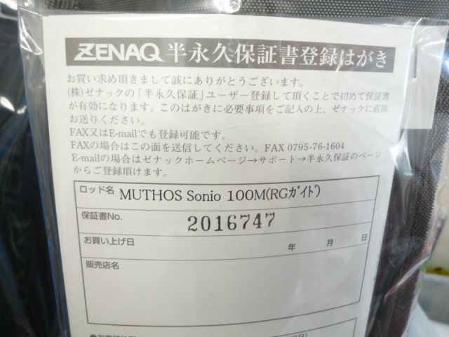 ゼナック ミュートスソニオ 100M RGガイドが