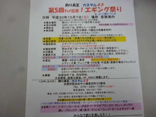 10月14日エギング祭り大募集(2018/10/05)