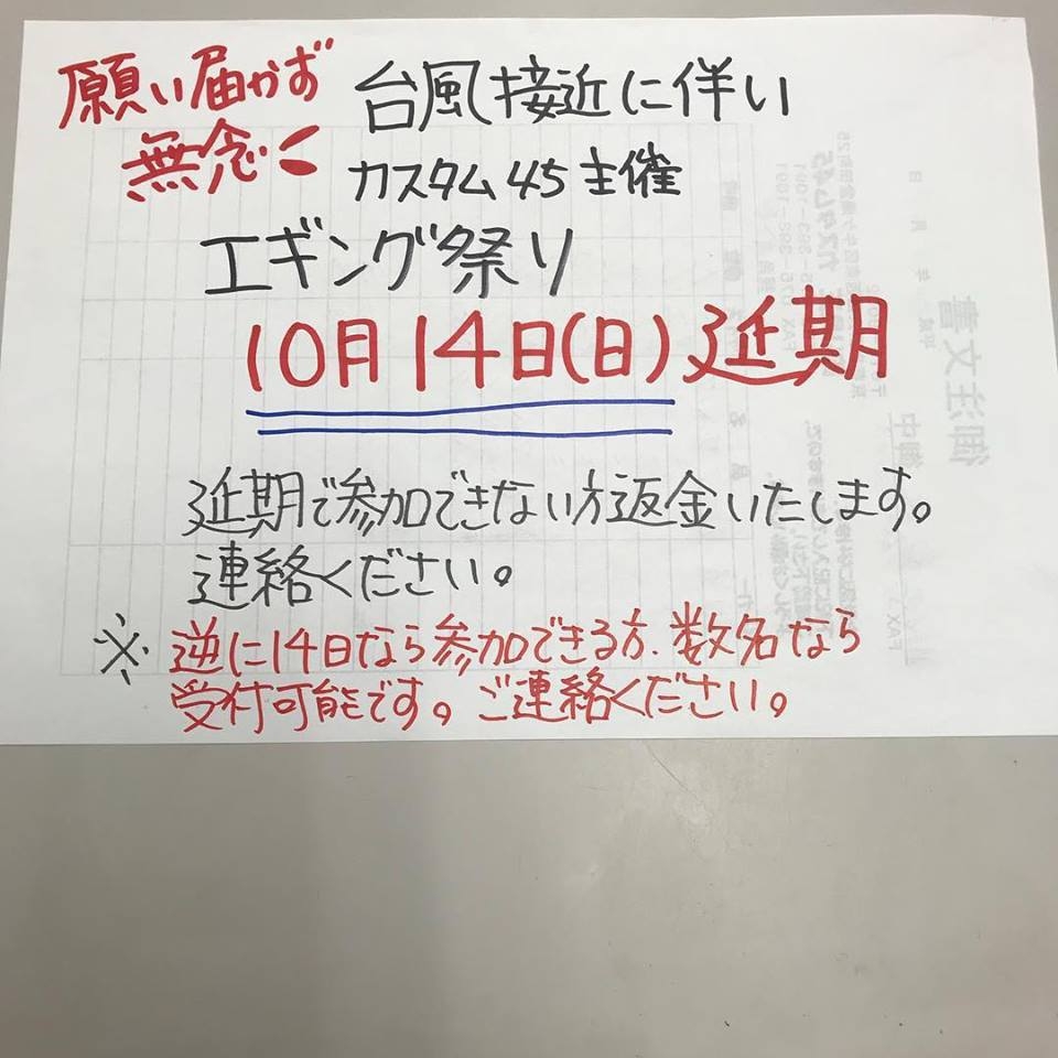 エギング祭り延期のお知らせ(2018/10/04)