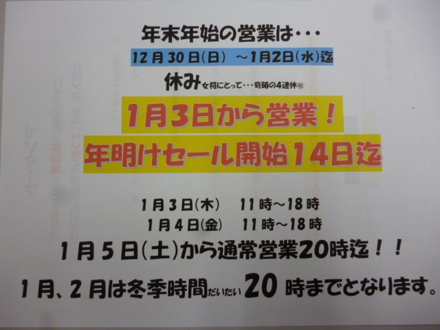 年末年始営業時間のお知らせ(2018/12/18)