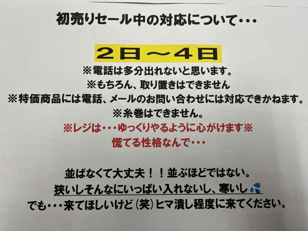 2日から初売りセール、セール開催。暇つぶしにきてね。