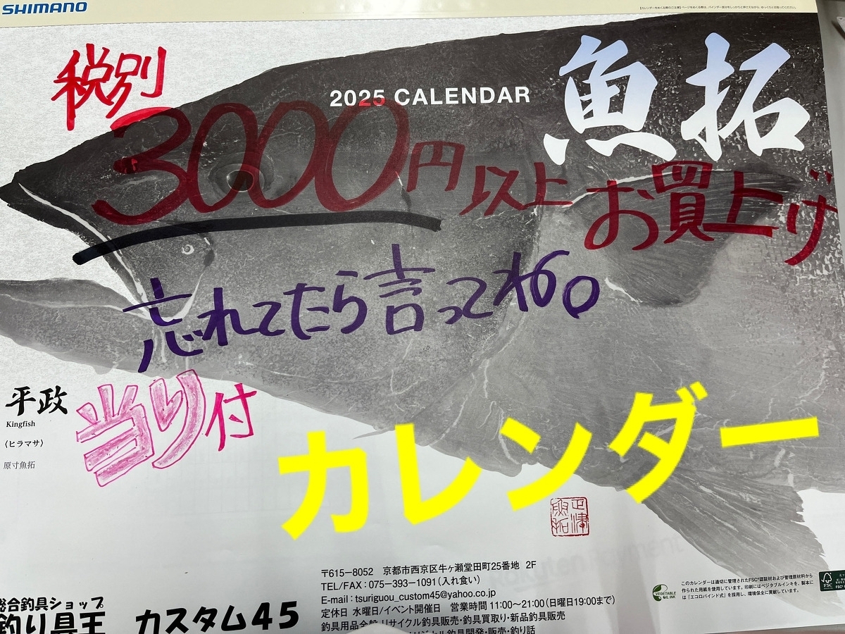3000円⁽税別)以上お買い上げで・・・シマノの魚拓カレンダー